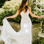 Trouwjurk HAZEL LYNETTE van het merk Rebecca Ingram. Deze stijlvolle fit & flare jurk met bloemenaccenten laat je figuur prachtig uitkomen. De jurk heeft een hoge halter halslijn en de opvallende rug is voorzien van een keyhole-rug. De gehele jurk is afgewerkt met luxe kant applicaties.