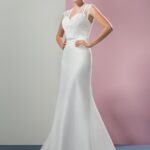 Trouwjurk SARIS van het bruidsmode merk Jarice. Deze prachtige jurk heeft een strapless top helemaal gemaakt van kant. De top loop met wat kanten applicaties over in een wijd uitlopende rok gemaakt van tule.